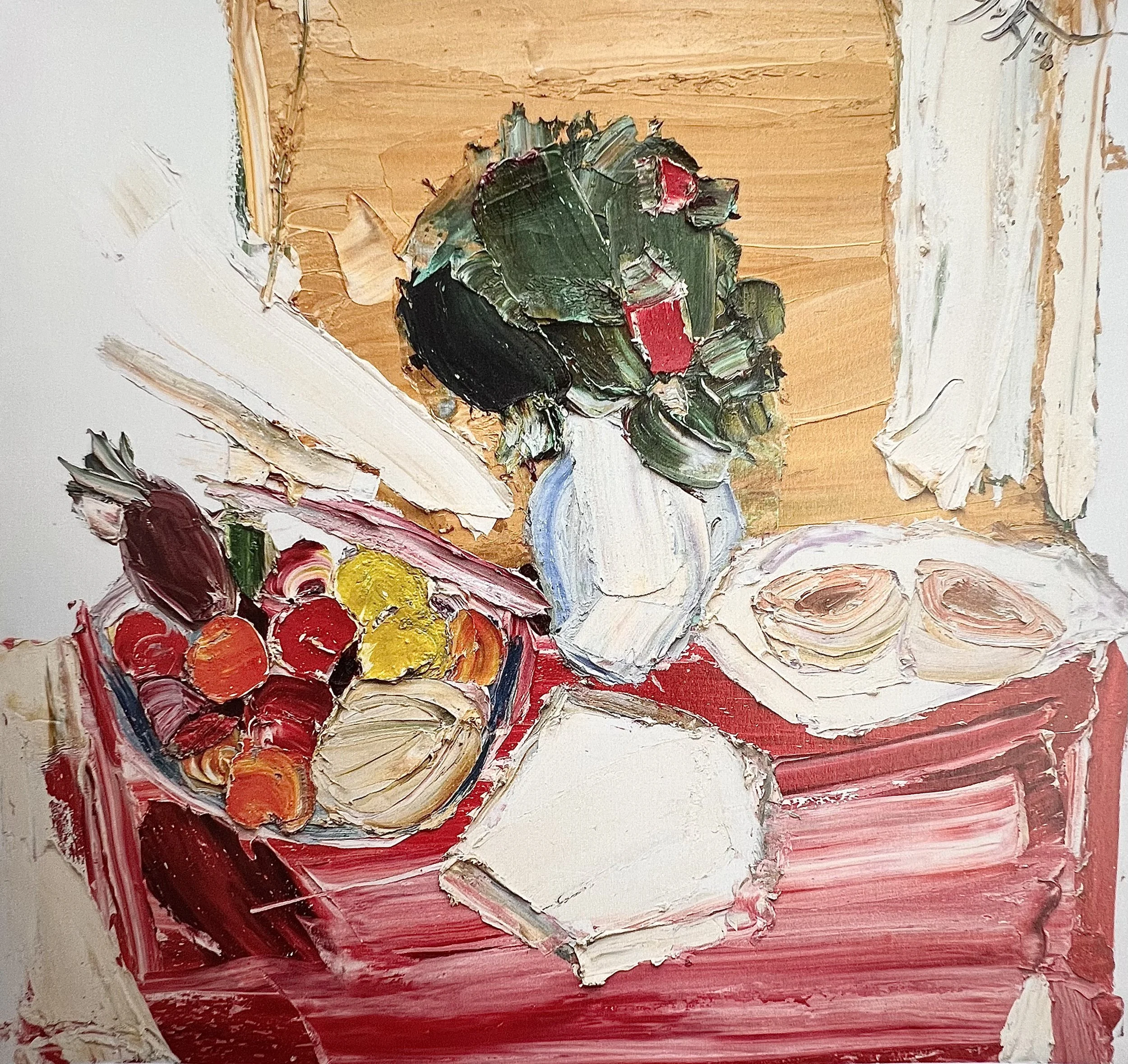 Yektai’s Persian soul also emerged powerfully in his work in the final third of his life. Bright pots of flowers, moody landscapes, portraits of people he loved; celebrations of rural and everyday scenes; the bowls of fruit so common in traditional Persian households; his use of color and patterns — the paintings he produced during his last decades are brusque and masculine even as they are tender and reflective. They burst with color. Some might think it a stretch to see anything distinctly Persian in any of this, but those who knew him recognize his ancestral roots there.